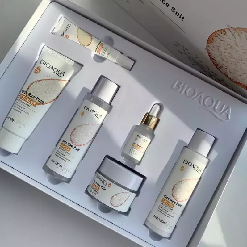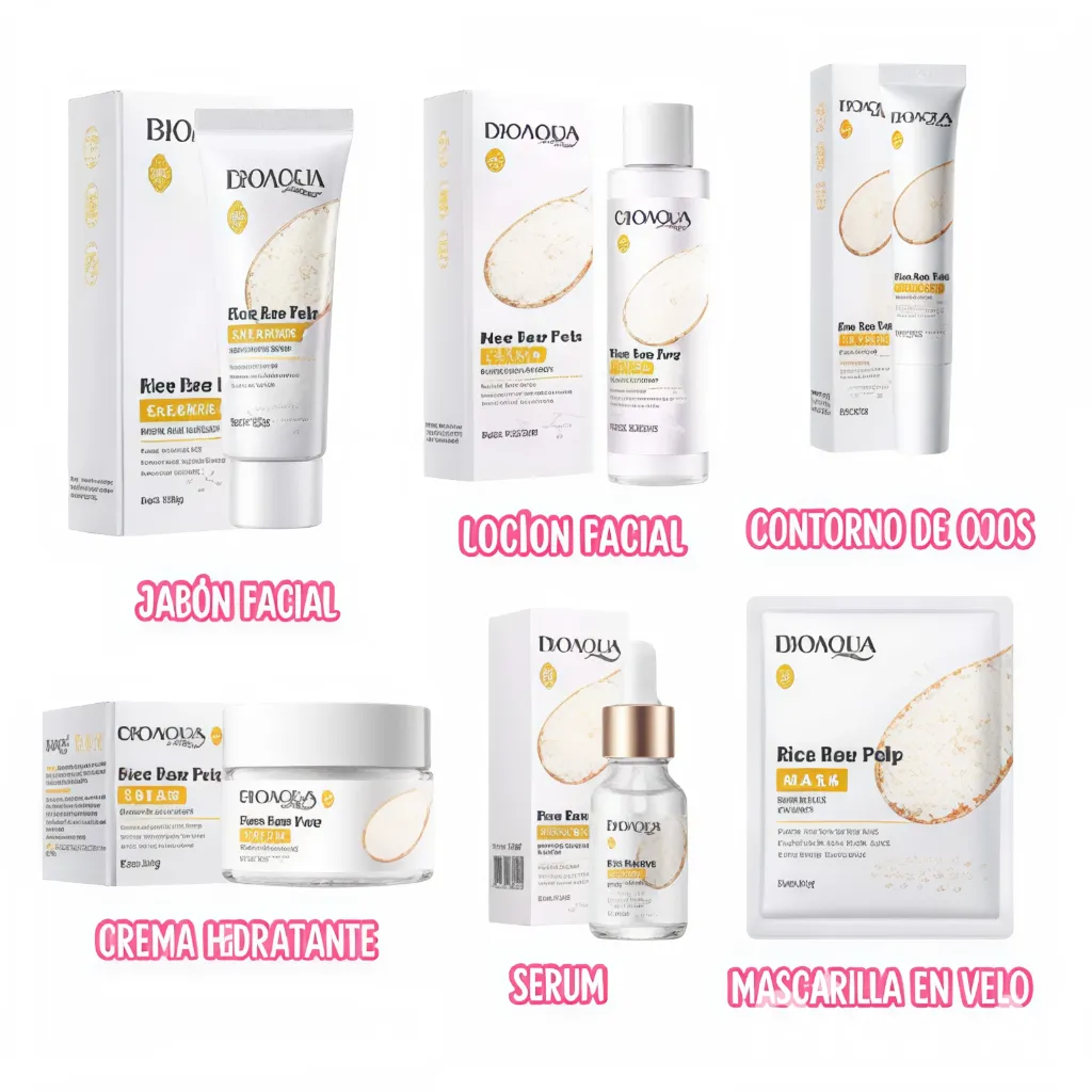 Kit De Arroz Bioaqua Antioxidante Rejuvenece Hidratante – Caja De Lujo x6 Productos – Cuidado Facial – SkinCare