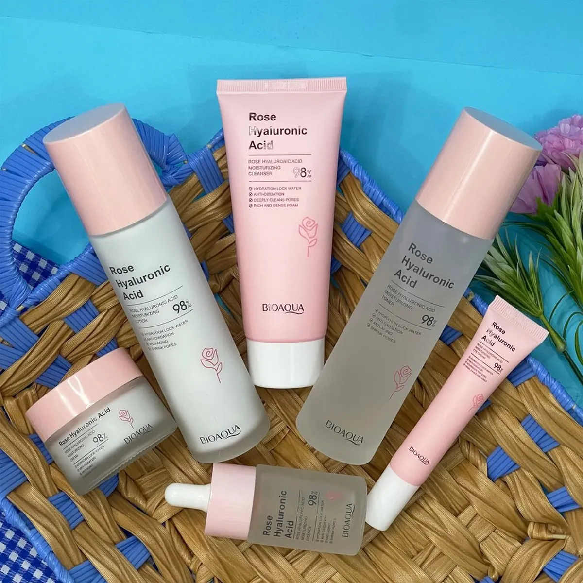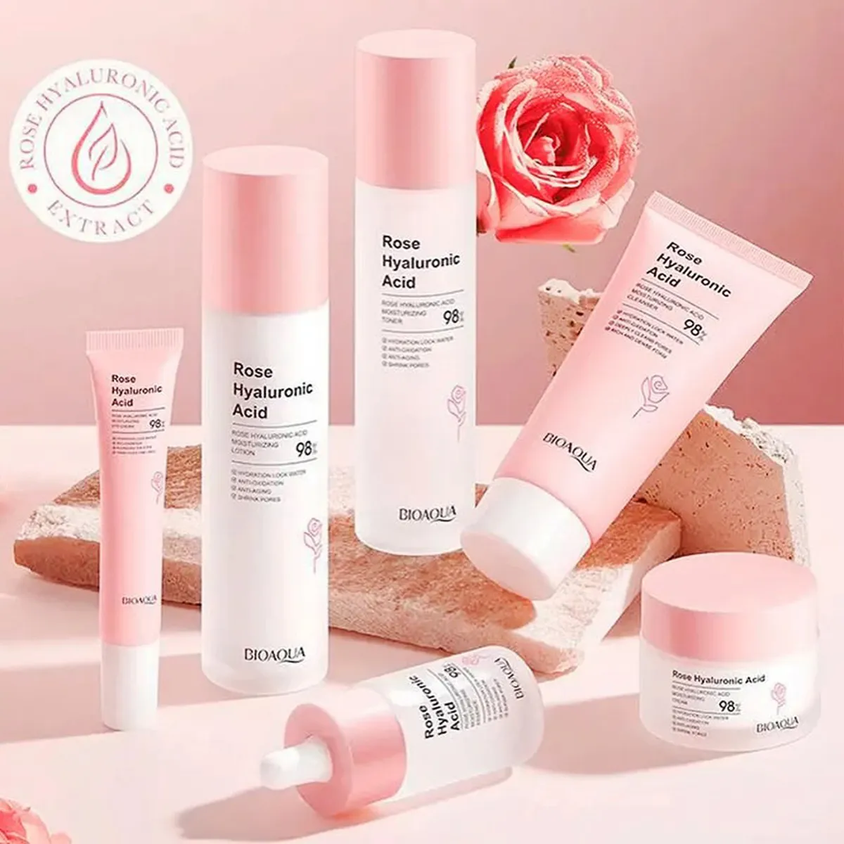 Cada producto es una obra maestra formulada con el puro extracto de rosas y el potente ácido hialurónico, para una sinfonía de cuidado en tu piel.