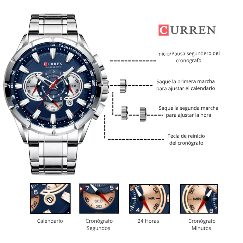 • 1 Reloj CURREN 8363 Original con Cronógrafos 100% Funcionales.